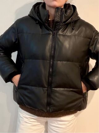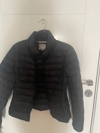 Chaqueta de plumas negra de Zara para mujer. Yo tengo talla M y me sirve, talla poco - Diseño acolchado. - Cierre de cremallera frontal. - Bolsillos laterales con cremallera. - Capucha extraible
