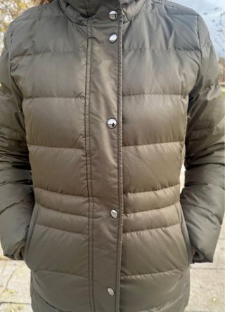 Parka de 50% plumas y 50% plumón con un diseño acolchado y cálido. Se ha usado 2 veces. - Cierre de cremallera y botones a presión. - Bolsillos frontales con solapa y botón. - Cuello alto. - Cordón ajustable en la cintura.