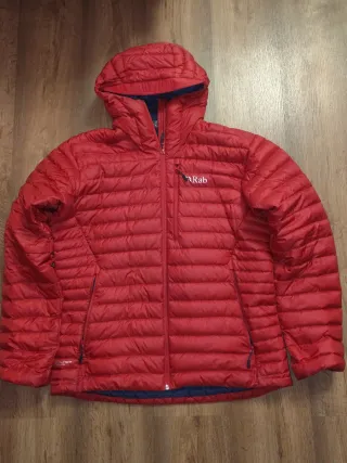 Plumas Rab 700 FP. Pluma con tratamiento hidrófugo Nikwaw Tejido exterior Pertex Quantum. Cremalleras YKK. Puños con terminaciones elásticas. Capucha fija y rellena de plumas con visera. Bajo ajustable. Precio real de 240 euros. Usado dos veces lo vendo porque me queda grande.