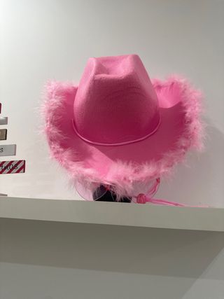 Sobrero vaquero rosa con plumas