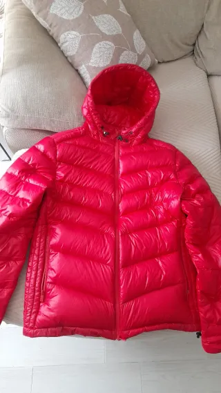Plumas de bus stop talla 14 años. Pero vale para adulto talla S y M. Ver fotos. Medida en fotos. Color rojo . Calidad muy buen género. Muy abrigadito. Vale para Nieve con capucha que se quita. Plumas auténtico. Dos veces utilizado. Esta nuevo.