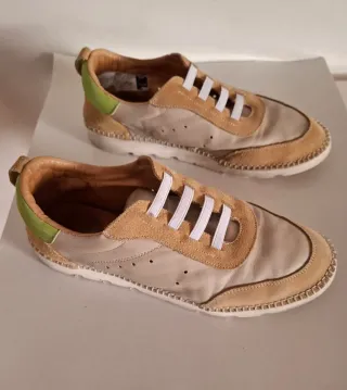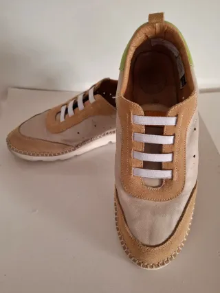 Zapatillas deportivas 100% piel. Colores: beige y verde. Muy cómodas y superligeras, no pesan nada!! Aunque son talla 38 calzan menos de largo, equivalen a talla 37.