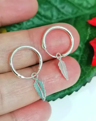 Pendientes aro de plumas De Plata De Ley 925 -Modelo clasico -ideal para un regalo -Nuevo a estrenar -con su caja pequeña de regalo -Diametro aro: 1.30cm -Largo Colgante: 1.10cm -Ancho Colgante: 0.50cm