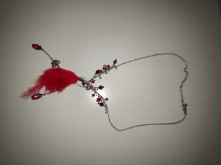 Precioso collar de plumas, ideal para darle un toque especial a tu look. - Nuevo con etiquetas. - Combina plumas negras y rojas. - Diseño llamativo y elegante.