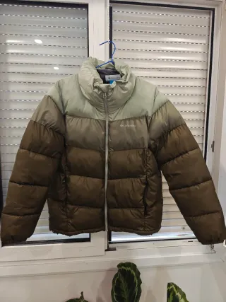 Chaqueta acolchada de la marca Columbia con un diseño degradado en dos tonos. - Color principal marrón con detalles en verde oliva. - Cuello alto y cierre de cremallera. - Bolsillos laterales.