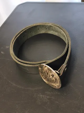 Cinturón Cuero con Hebilla Lobos Plateado