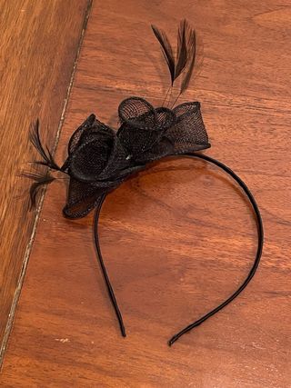 Elegante tocado de rafia y plumas, ideal para eventos especiales como bodas o fiestas. - Diseño con detalles de rafia. - Adornado con plumas. - Montado sobre diadema.