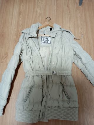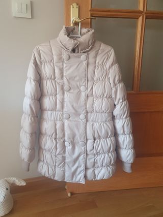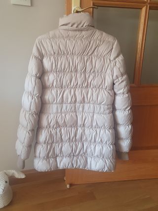Abrigo acolchado de Mango, perfecto para el frío. Relleno de plumas y plumon. - Diseño entallado en la cintura. - Cremallera frontal. - Bolsillos laterales. La tela está algo rozada en la parte posterior. Que se ve con el reflejo de la luz, no se aprecia mucho.