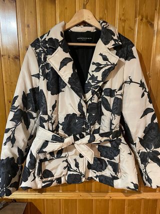 Abrigo flores negro y blanco roto T-Xl como nuevo