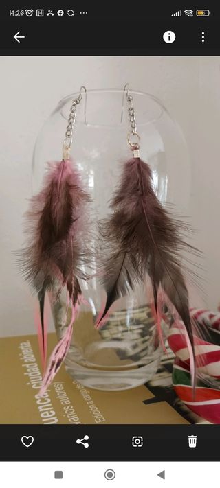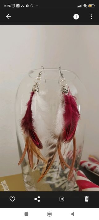 Preciosos pendientes artesanales con plumas. Ideales para darle un toque boho chic a tu look. - Diseño único con plumas rojas y blancas. - Elegante combinación de colores. - Acabados impecables.