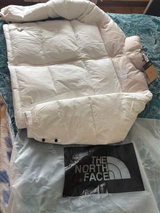 Chaqueta acolchada con relleno de plumas, estilo Nuptse. - Cierre frontal con cremallera. - Cuello alto. - Logo de la marca en el pecho.