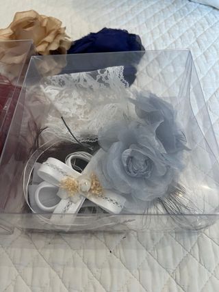 Tocado horquilla flores y perlas
