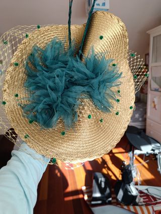 Sombrero verde con pluma y trenzado