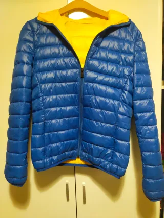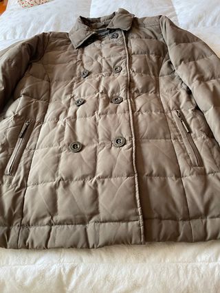 Abrigo/cazadora de plumas con cuello alto. Es muy calentito. - Diseño acolchado. - Bolsillos con cremallera. - Todas las cremalleras en perfecto estado.