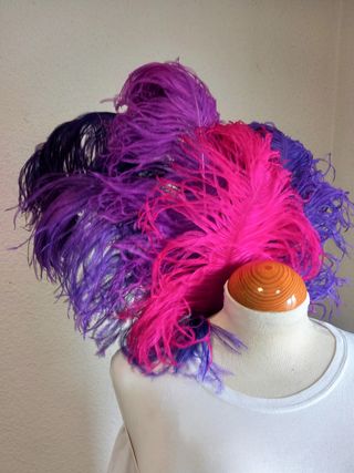 9 maravillosas plumas de distintos tamaños y colores entre el morado/rosa y verde/azul, la mayor mide 50cm la pequeña 25cm. Pido 1 euros cada una, llevalas todas y son 7 euros