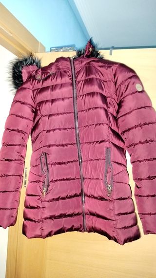 Pluma o chaqueta bomber,color granate,talla L pero equivale a M.Poco uso,como nueva.De axila a axila 52cm. Unisex
