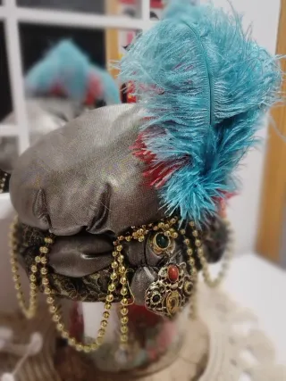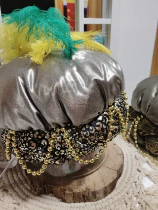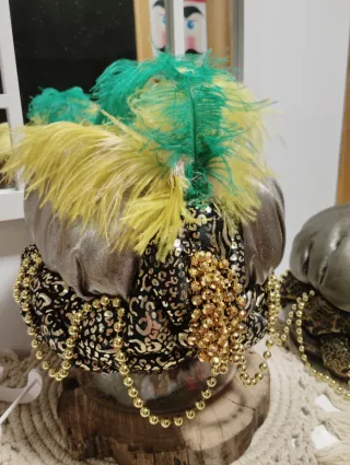 Gorro Rey Baltasar con plumas y abalorios