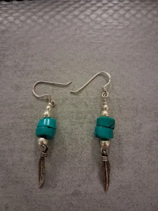 Pendientes con un diseño único y llamativo. - Cuentan con cuentas de turquesa. - Detalles en tono plateado. - Colgante con forma de pluma.