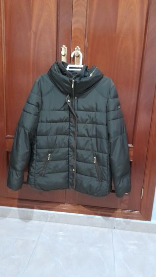 Cazadora de mujer, entallada, tipo plumas, está muy bien pero tiene un pequeño enganchon en el forro interior no visible