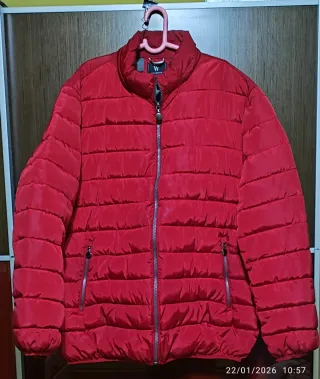 Chaqueta acolchada estilo plumas, en color rojo vibrante. Es una prenda ligera y abrigada, ideal para el entretiempo. - Cierre de cremallera frontal. - Dos bolsillos laterales con cremallera.