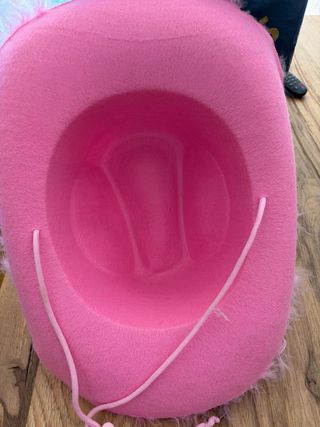 Este sombrero rosa es un accesorio divertido y llamativo. - Decorado con plumas rosas alrededor del ala. - Diseño de sombrero de vaquero.