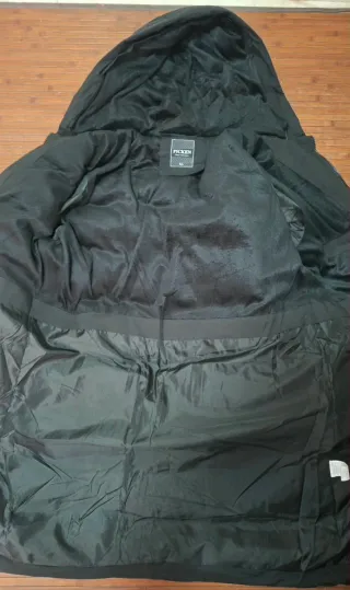 Maravilloso abrigo, por dentro con terciopelo, muy pero que muy abrigado y comodo, abrigo top. Doble cremallera, además de ancha también. XL aunque para alguien que use una L también podría velerle. MEDIDAS EN CENTIMETROS 1,02 cm de arriba a abajo. 63 cm de axila a axila. Perfecto, el forro del gorro no se