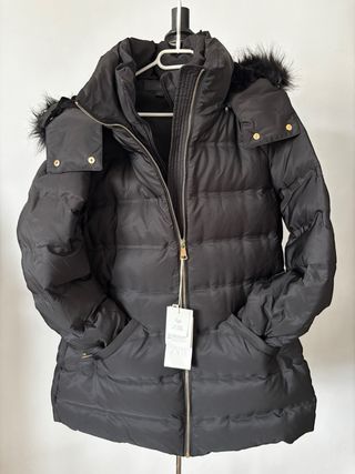 Chaqueta acolchada de Zara con capucha y detalles de pelo. Nuevo con etiqueta - Cierre de cremallera frontal. - Bolsillos laterales con cremallera. - Puños elásticos.