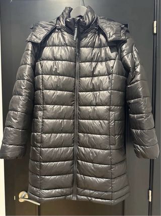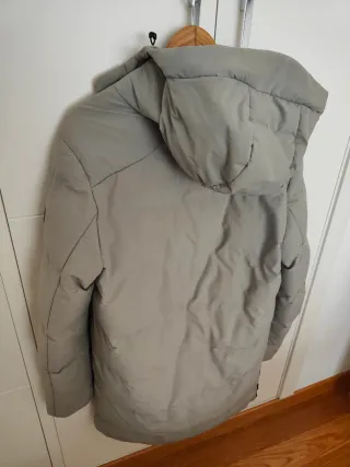 Plumífero de la marca Zara en color gris. Es una prenda de abrigo con un acabado brillante. Es prácticamente nueva, sin ninguna marca de uso y en perfecto estado - Diseño acolchado. - Cierre de cremallera frontal, y botones a corchete a mayores. - Capucha integrada. - Abriga bien, protege del viento y temperaturas de hasta - 15 grados. - Se puede ajustar el ancho