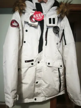 Plumífero Canadian de dos colores, talla S, completamente nuevo y con etiqueta.no está relleno de plumas sino de un material que utiliza Canadian térmico que abriga un montón). efecto metalizado,nuevo con etiquetas,es una S amplia,mide 53 cm de axila a axila por fuera por 75 cm de largo,calidad excepcional!💓precio en tienda 290! - Diseño acolchado. - Cuello alto plateado. - Cierre de cremallera.