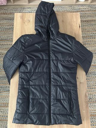 Plumífero acolchado con capucha de la marca Puma. - Cierre de cremallera frontal. - Dos bolsillos laterales con cremallera. - Logo de Puma en el pecho.