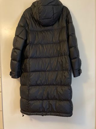 Plumífero largo de H&M en color negro. Es una prenda cálida y cómoda. - Diseño acolchado. - Capucha integrada. - Cierre de cremallera frontal.