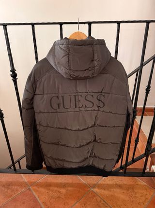 Plumífero acolchado de la marca Guess, ideal para el frío. - Diseño moderno y confortable. - Capucha integrada. - Cierre de cremallera frontal. - Bolsillos laterales.
