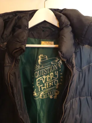 Plumífero de la marca Ecoalf en color azul marino. - Diseño acolchado. - Cierre de cremallera frontal. - Capucha integrada. La cremallera no funciona de ahí su precio.