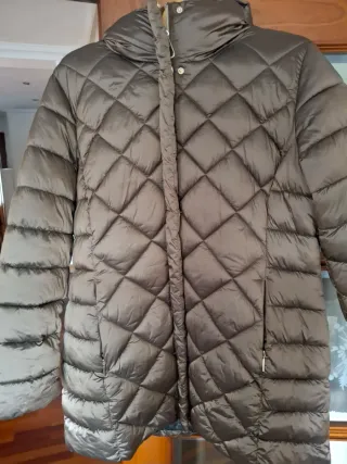 Chaqueta plumífero larga de la marca Esprit. Es una prenda cómoda y estilosa. Color verde botella,es muy bonito el color . Tengo varias de esta marca ,me encanta,es suave ,ligera y muy favorecedora,con cremalleras laterales me costó 80€ de 120€ es preciosa repito,no se aprecia en las fotos. - Diseño acolchado fino. - Capucha integrada. - Cierre de cremallera frontal. - Bolsillos laterales con cremallera.