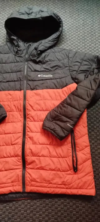 Chaqueta plumífera de la marca Columbia en color rojo caldera. Es ligera y cálida, ideal para el frío. - Capucha integrada. - Cierre de cremallera frontal. - Bolsillos laterales con cremallera. - Tecnología Thermal Reflective. - Regular Fit. Tiene una pequeña mancha casi imperceptible en la parte delantera. Lo vendo porque le queda grande a mi pareja. Se puede probar sin compromiso.
