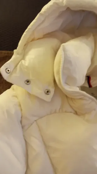 Elegante plumífero de la marca Moncler año 2024 color blanco perlado, muy liviano y super cómodo. - Color blanco perlado. - Diseño acolchado. - Cremalleras frontales y en bolsillos. - Cuello alto con detalle de pelo. Super calentito y cómodo.