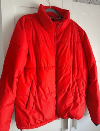 Abrigo tipo plumífero con un acabado brillante y capucha. - Diseño acolchado. - Cierre de cremallera. - Bolsillos laterales con cremallera. Talla Xl 180/96