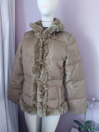 Abrigo plumífero en color beige, en perfecto estado. - Capucha con cordones. - Cierre de cremallera. - Bolsillos con cremallera. -Super calentito!!