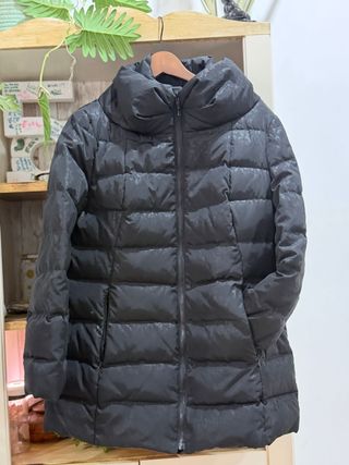 Chaqueta acolchada Mango, en color negro, muy abrigada y cómoda, ideal para invierno. Diseño largo tipo plumífero, con cuello amplio acolchado que protege bien del frío. Cuenta con cierre de cremallera frontal, bolsillos laterales con cremallera y detalle de cinturón decorativo con hebilla, que aporta un toque elegante y estiliza la silueta.El material es de plumas buenas por dentro. Tejido ligero pero muy calentito, perfecta tanto para looks casuales como más arreglados. Precio negociable.