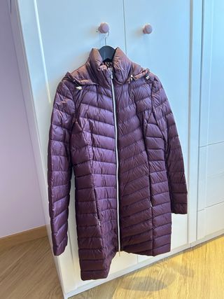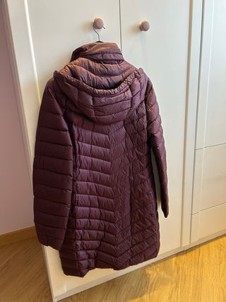 Abrigo plumífero grueso de color burdeos. Es una prenda cálida y confortable. - Diseño acolchado. - Cremallera frontal.