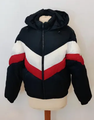 Abrigo Anorak acolchado con diseño de chevrón en contraste. Cierre de cremallera frontal y capucha integrada . Marca PACIFIC REPUBLIC de PULL & BEAR: - Diseño de bloques de color. - Bolsillos laterales. En perfecto estado. Usado en un par de ocasiones.