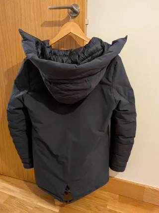 Plumífero Canadian Peak en color azul marino. talla S. Prenda sin estrenar. - Diseño acolchado. - Cierre frontal con cremallera. - Bolsillos laterales con solapa y botón. - Capucha integrada.