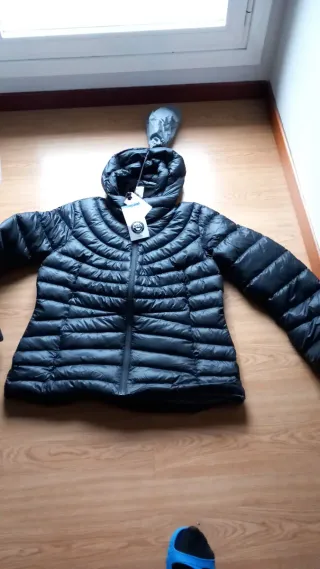 Plumífero negro corto con capucha que le compré a mi hija y no le ha gustado. No conserva etiqueta porque mi hija las corta. Puesto 1 día.