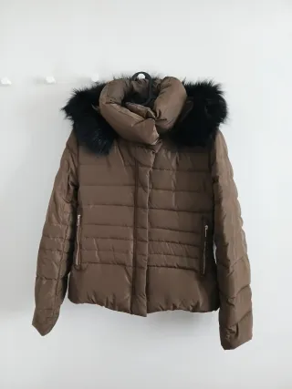 Plumífero marrón con capucha y pelo desmontable