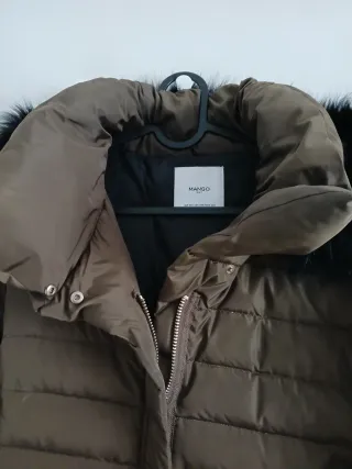Abrigo plumífero de Mango en color verde oliva. Cuenta con un diseño acolchado y capucha con pelo desmontable. - Talla XS. - Cierre de cremallera. - Bolsillos laterales con cremallera. - Puños con cremallera. ¿Te gusta? Escríbeme :) Puedes solicitarme el envío por Wallapop, ¡es fácil, rápido y seguro!
