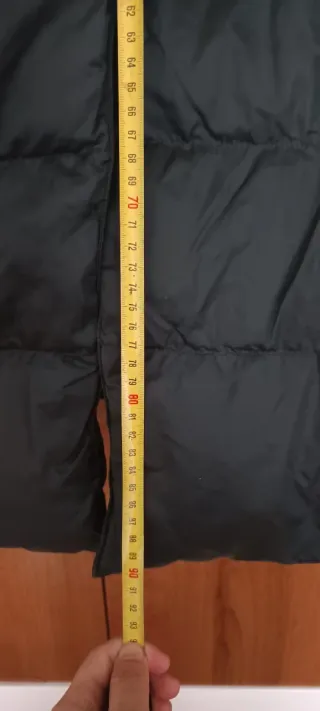 Como nuevo. No pesa nada. Medida de sisa a sisa 60 cm. Tiene unas asas para poder transportarla, que se pueden quitar. Bolsos grandes. Color kaki. Muy caliente. Se puede lavar en lavadora.