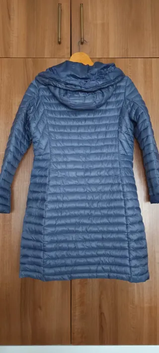 Plumífero geox 3/4 (por encima de la rodilla) talla 42( algo pequeño) ya que el corte es entallado. Capucha desmontable.Caliente y ligero. Repelente al agua. Se puede lavar. (SOLO ENVIOS)