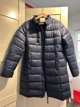 Abrigo acolchado de invierno para mujer talla L. Muy poco uso. Original. - Ajuste cintura elastico para marcar la silueta - Diseño largo y acolchado. - Cierre de cremallera frontal doble. Apertura superior e inferios. - Bolsillos laterales - Bolsillos ocultos interiores