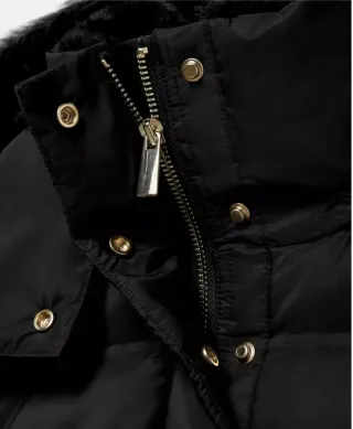 Abrigo plumífero con un diseño acolchado y cuello de pelo. Relleno de plumón y de plumas. - Cierre de cremallera frontal. - Bolsillos laterales con cremallera. - Detalle de pelo en el cuello.