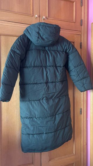 Abrigo largo de plumas para mujer, perfecto para mantenerte abrigada. Aun con mucho uso por delante. - Diseño acolchado. - Capucha integrada. - Cierre de cremallera frontal. - Asas para colgar de la espalda.